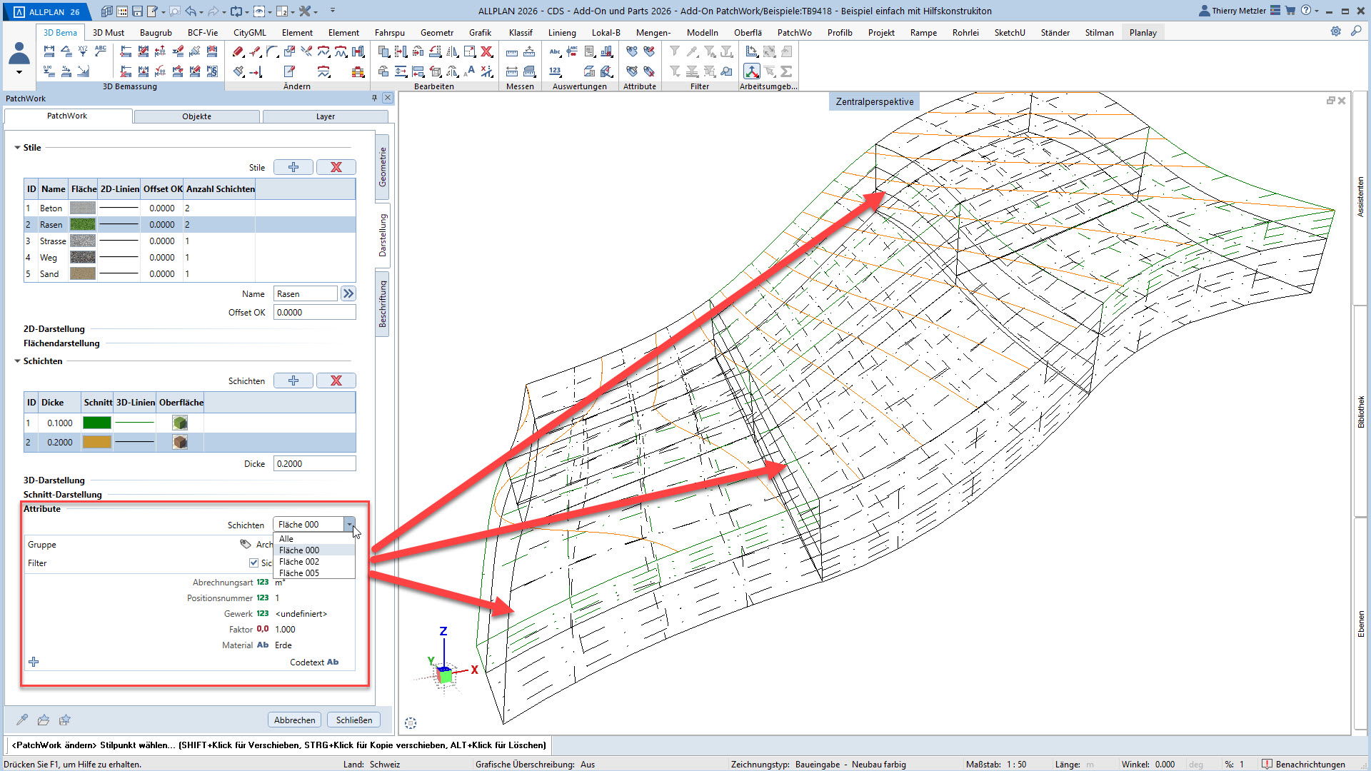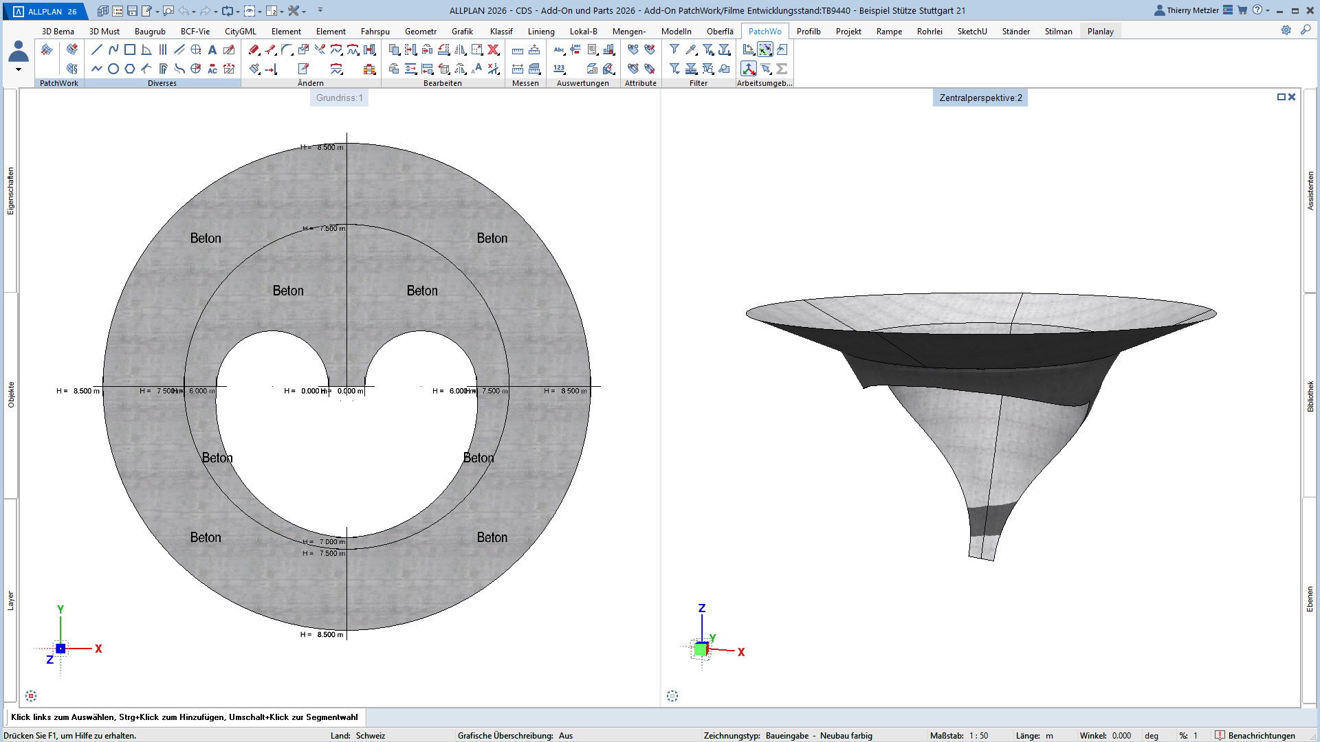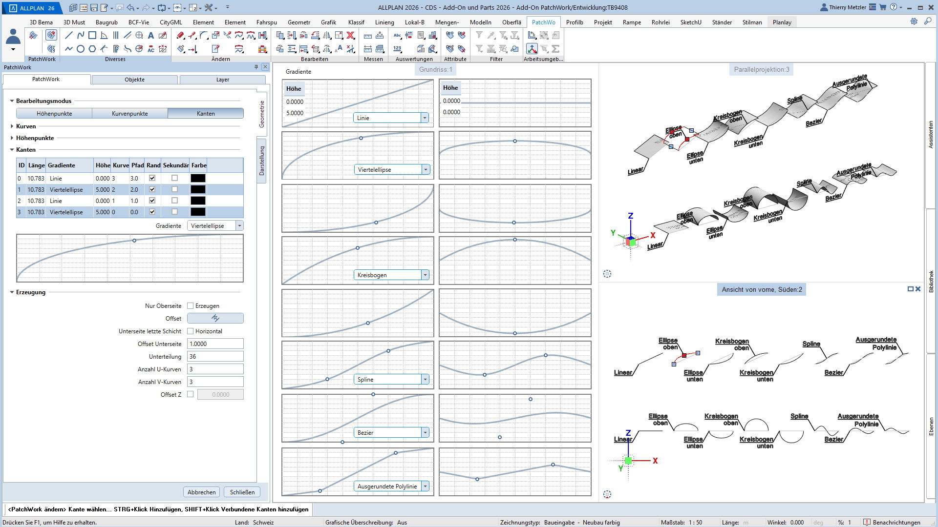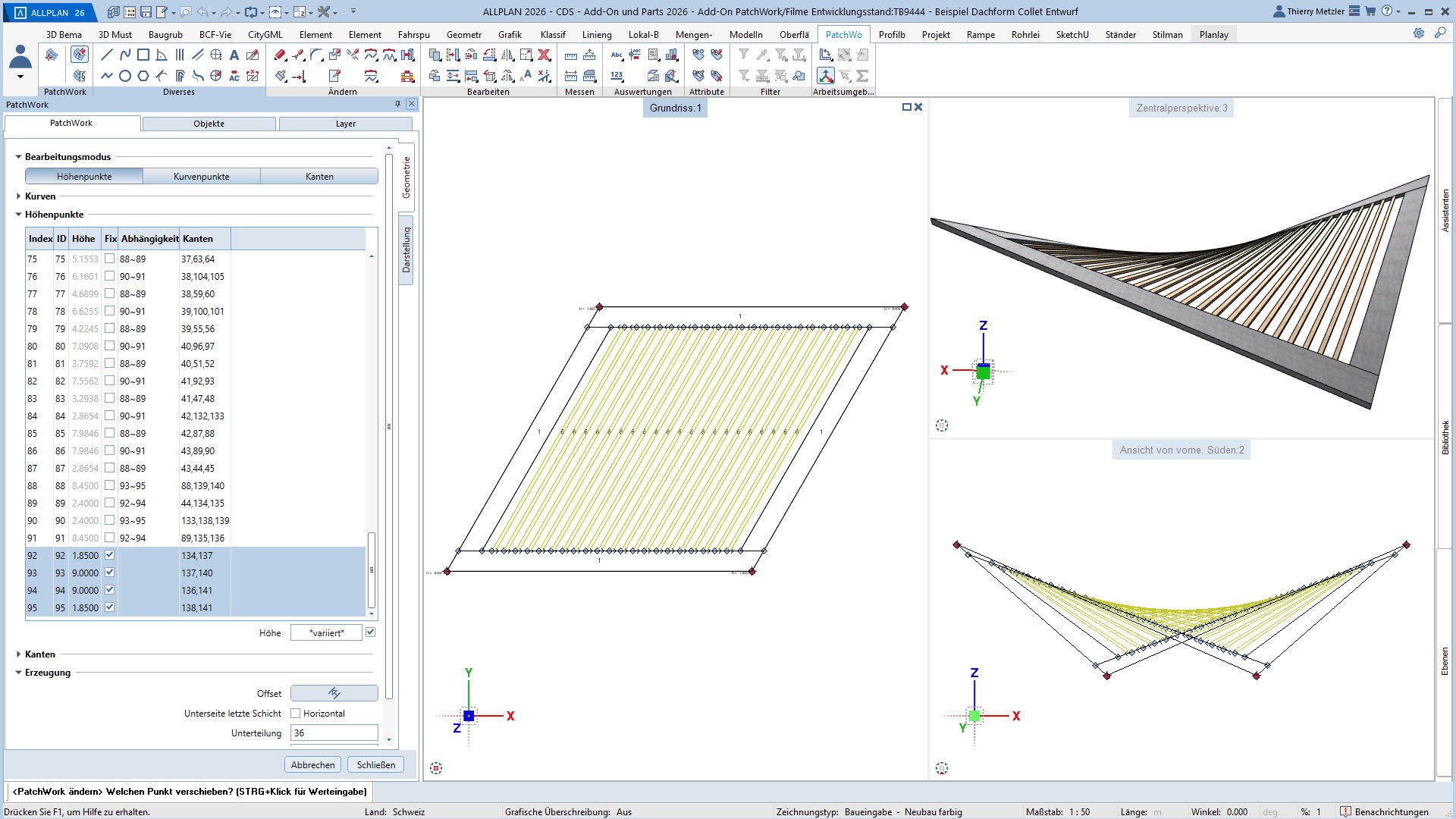 Mit dem ALLPLAN Add-On PatchWork erstellen Sie parametrische 2D- und 3D-Geometrien – intuitiv, flexibel und effizient. Egal, ob Sie 2D-Grundrisse entwerfen, komplexe 3D-Freiformbauteile wie Tragwerksstürze und Dächer modellieren oder Umgebungs- und Freiraumplanungen um Ihr Bauvorhaben umsetzen: PatchWork integriert sich nahtlos in Ihren Workflow.