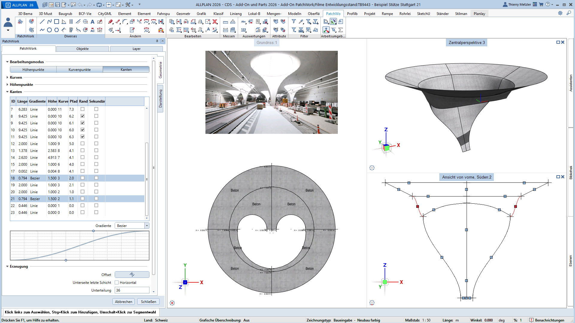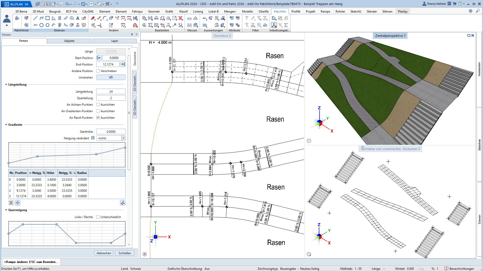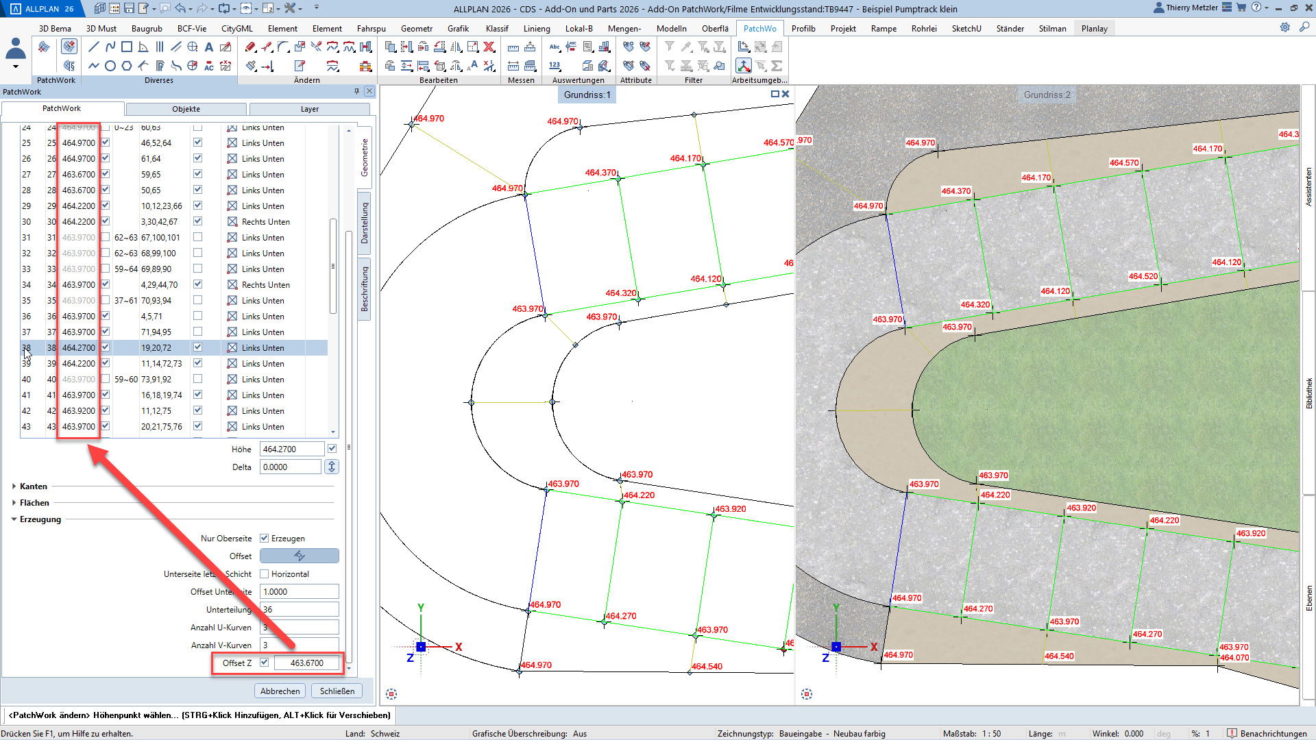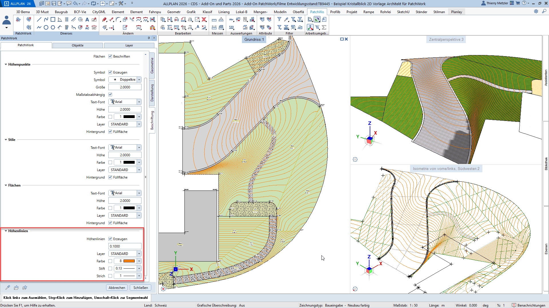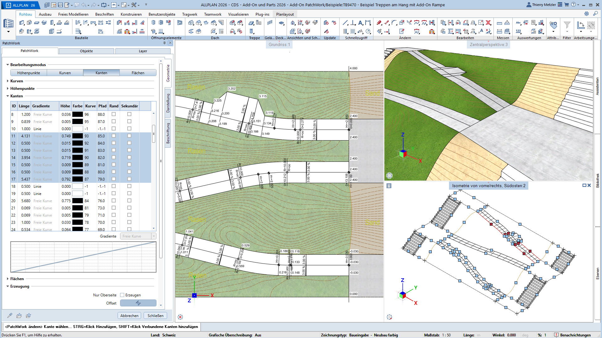 Alle Punkte, Linien und Kurven sind jederzeit anpassbar – Längenprofile, Flächen und Volumina lassen sich in jeder Planungsphase flexibel verändern. Und das alles über eine übersichtliche Palette, ohne Spezialwissen oder Programmierkenntnisse.