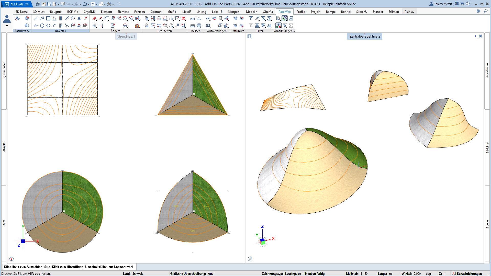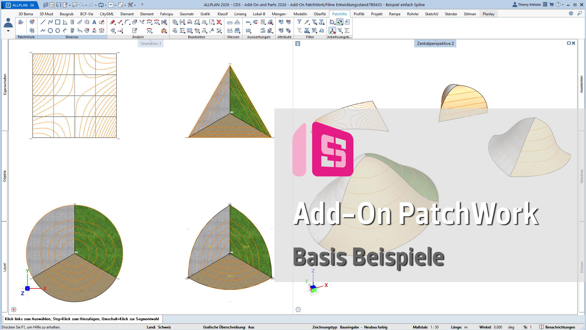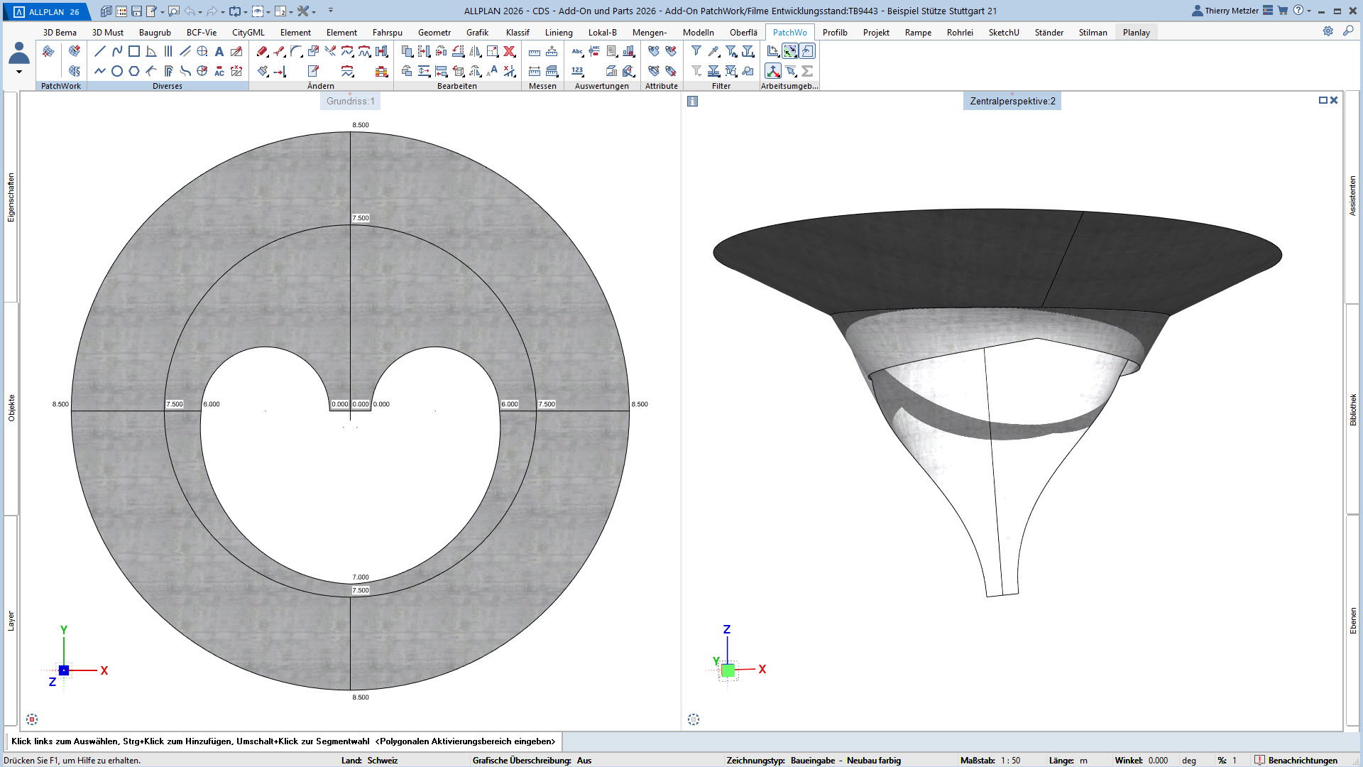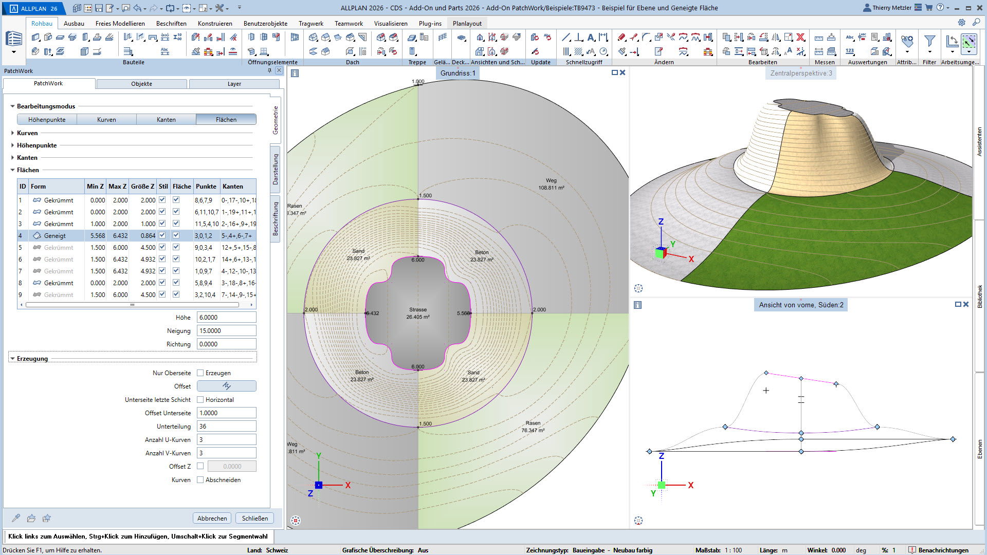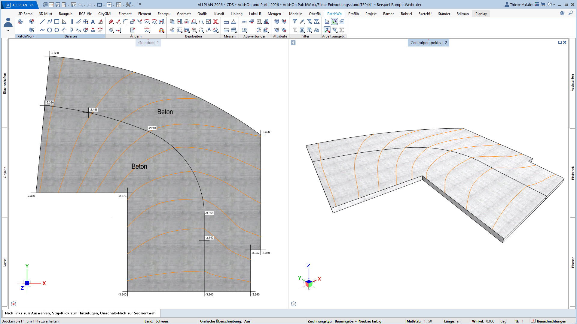 Mit dem ALLPLAN Add-On PatchWork erstellen Sie gekurvte und runde 2D- und 3D-Geometrien – intuitiv, flexibel und effizient. Egal, ob Sie 2D-Grundrisse entwerfen, komplexe 3D-Freiformbauteile wie Tragwerksstürze und Dächer modellieren oder Umgebungs- und Freiraumplanungen um Ihr Bauvorhaben umsetzen: PatchWork integriert sich nahtlos in Ihren Workflow.