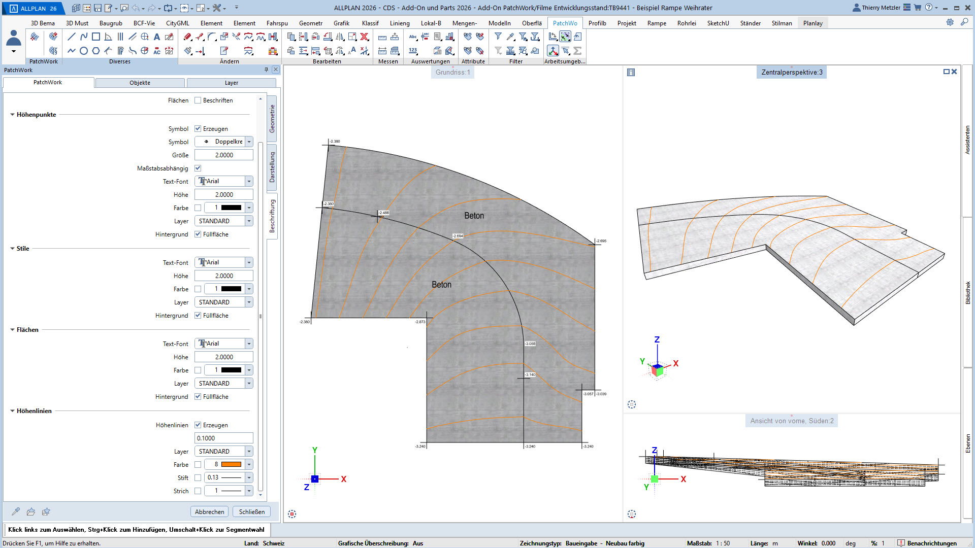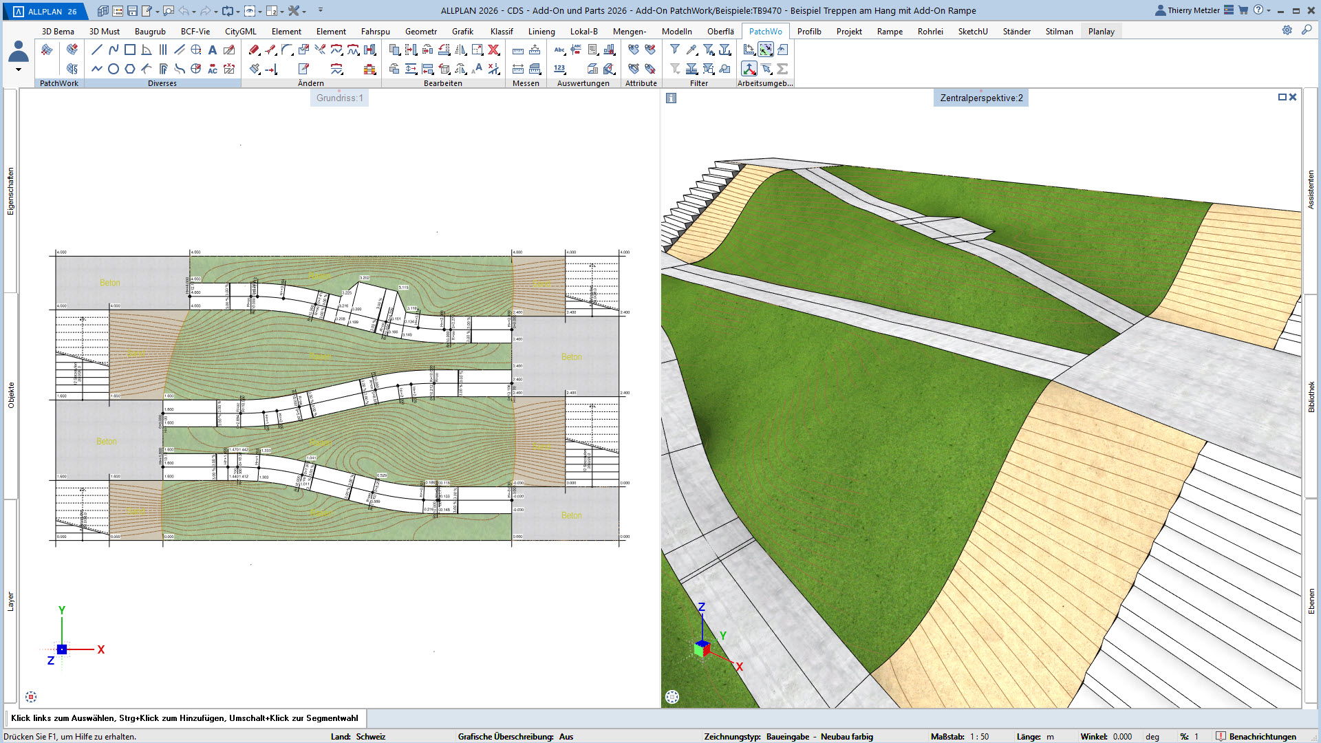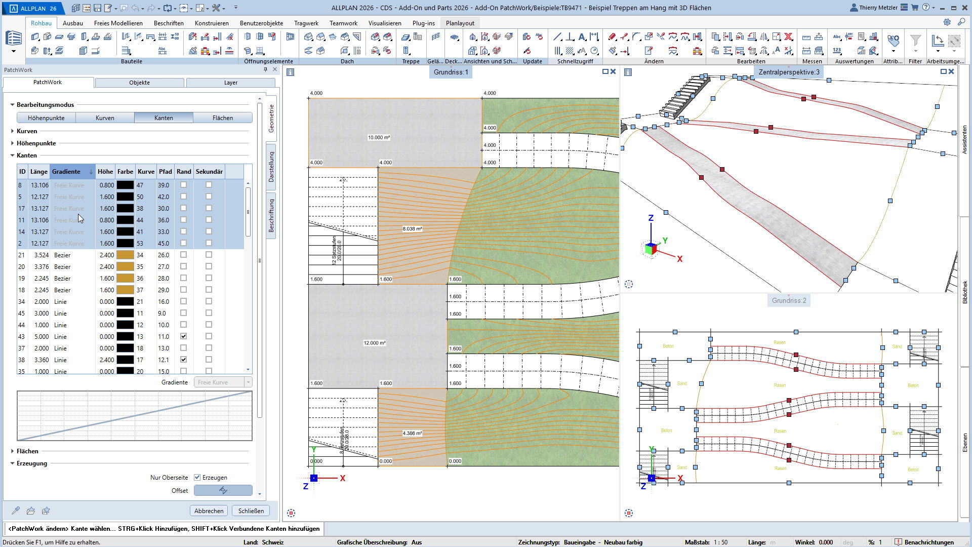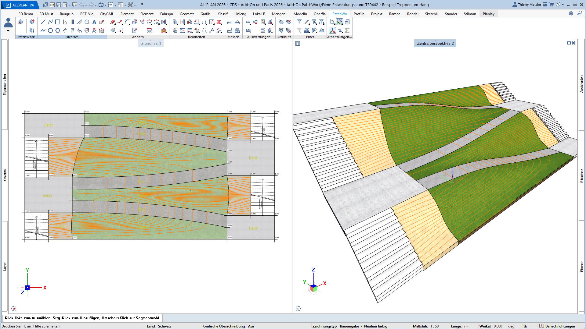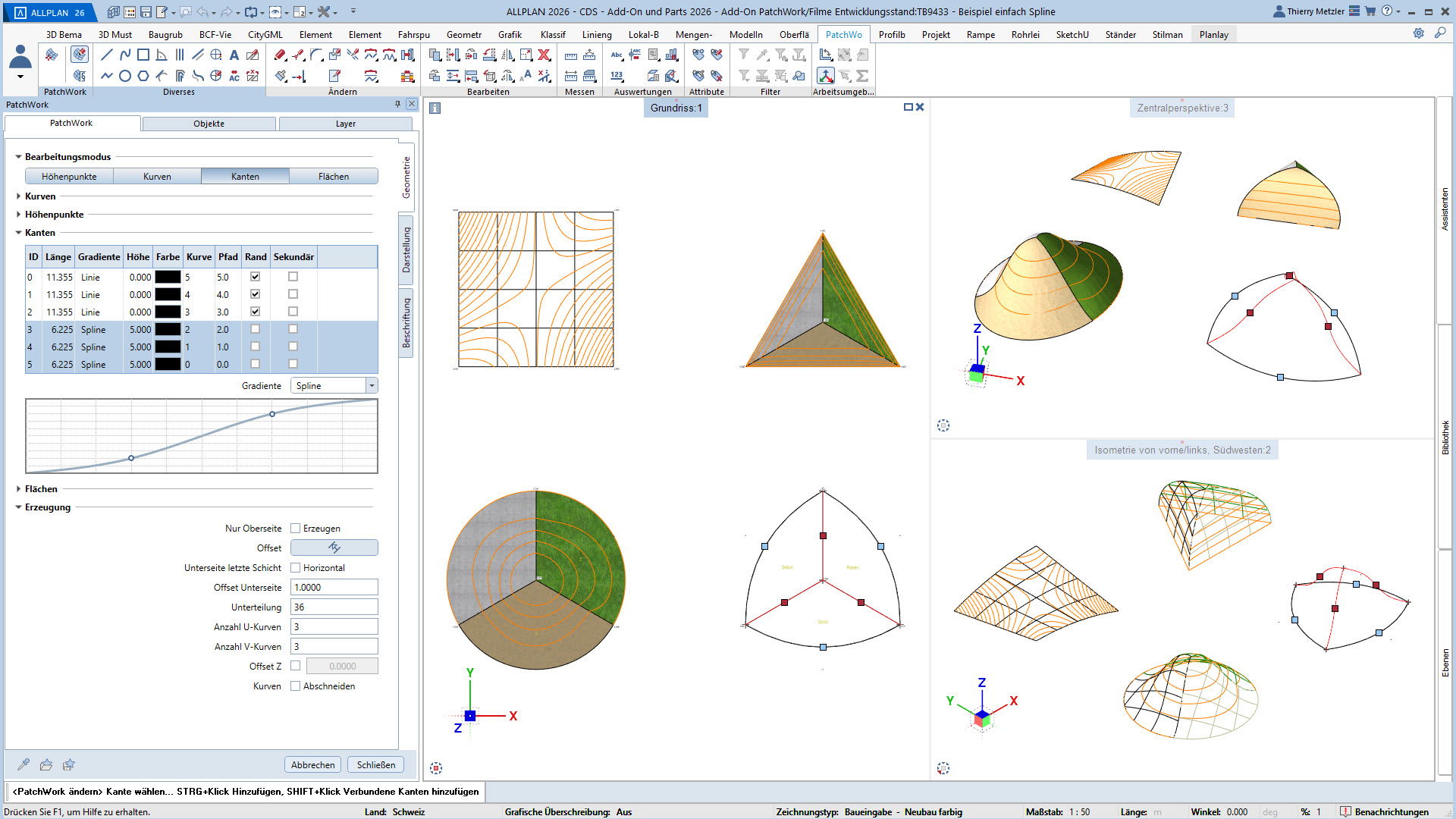 Mit dem ALLPLAN Add-On PatchWork erstellen Sie gekurvte und runde 2D- und 3D-Geometrien – intuitiv, flexibel und effizient. Egal, ob Sie 2D-Grundrisse entwerfen, komplexe 3D-Freiformbauteile wie Tragwerksstürze und Dächer modellieren oder Umgebungs- und Freiraumplanungen um Ihr Bauvorhaben umsetzen: PatchWork integriert sich nahtlos in Ihren Workflow.