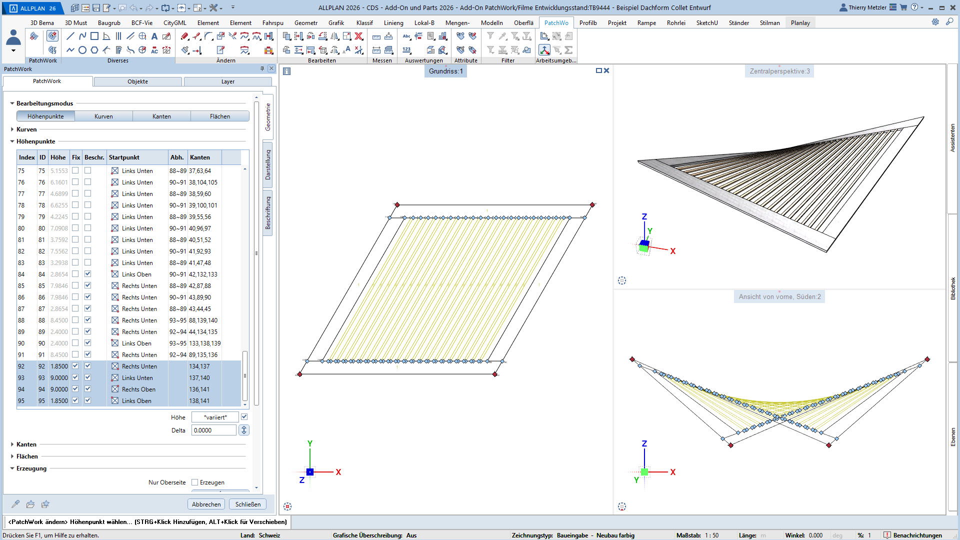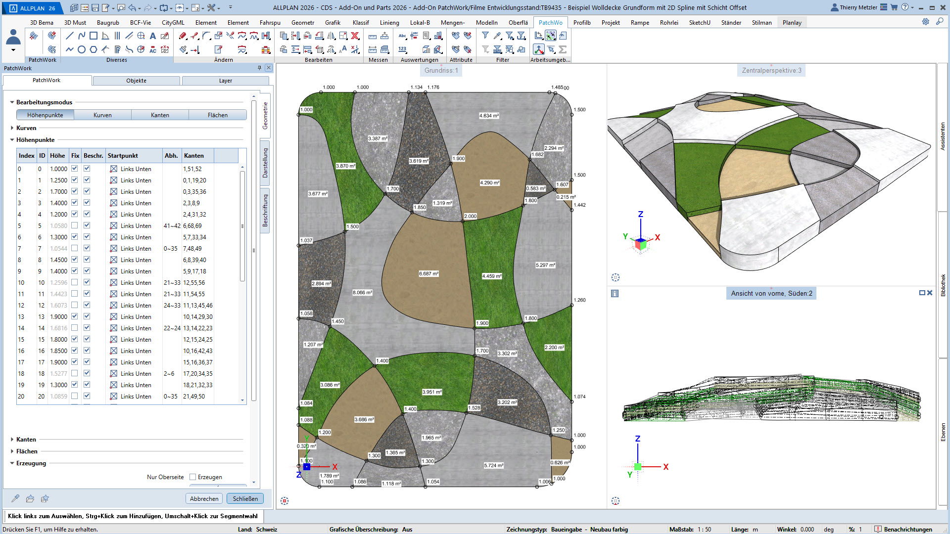 Höhenangaben und Texte passen sich automatisch an Verschiebungen und Drehungen des Patchwork-Makros an.